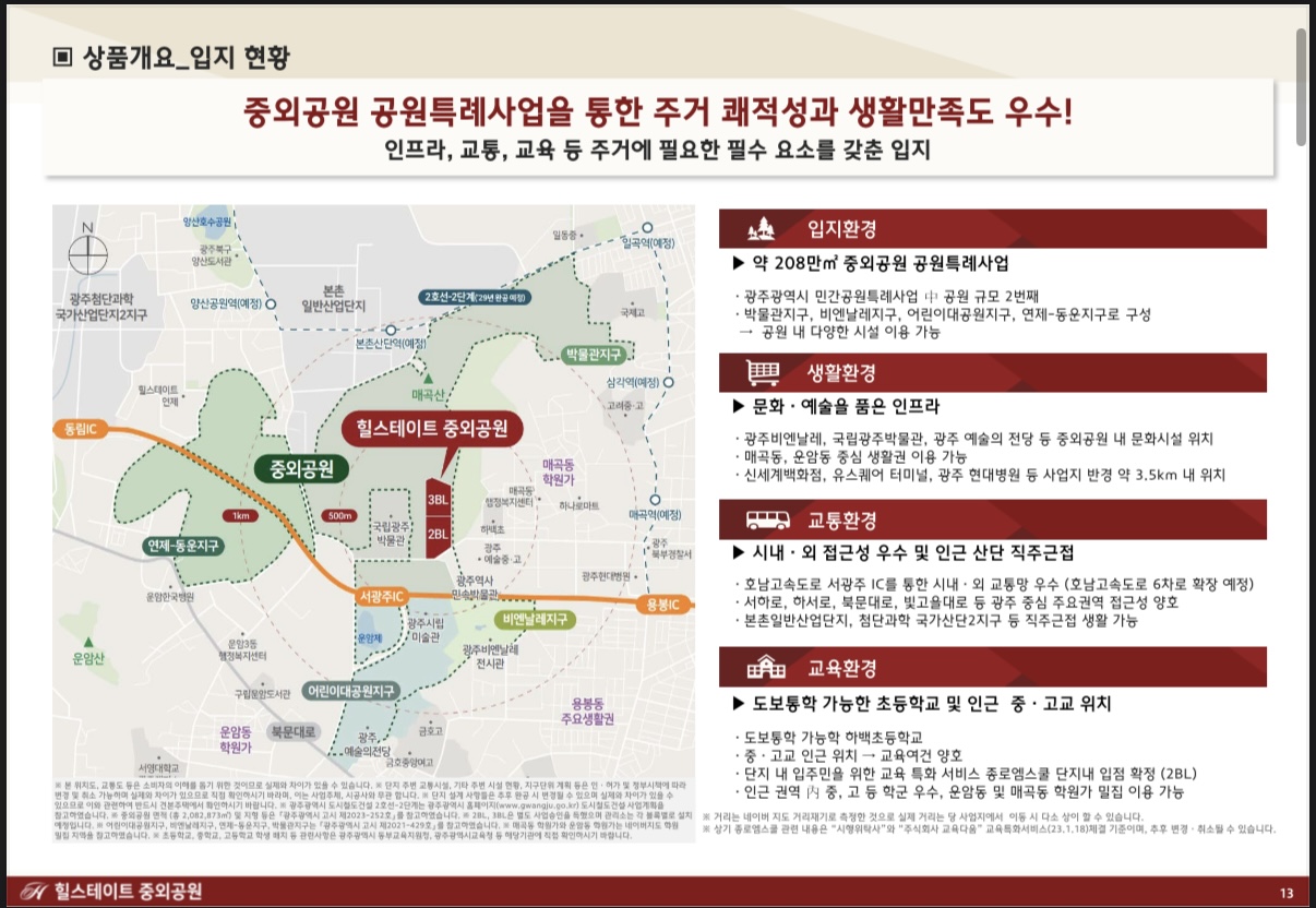 교통 측면에서도 서광주IC, 호남고속도로 확장 계획, 주요 도로망과의 접근성 덕분에 이동이 편리합니다.